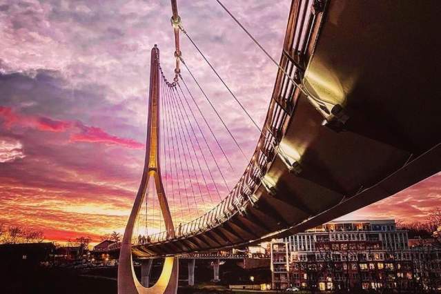 The Dublin Link Pedestrian Bridge, spanning the Scioto River, is the longest single-tower S-shaped suspension bridge in the world. Connecting Historic Dublin to Bridge Park, the bridge offers breathtaking views of the river and cityscape. Whether you're taking a leisurely stroll, capturing the perfect sunset photo, or exploring the vibrant districts on either side, the Dublin Link is more than a bridge—it's an experience that seamlessly blends beauty, connection, and community.
