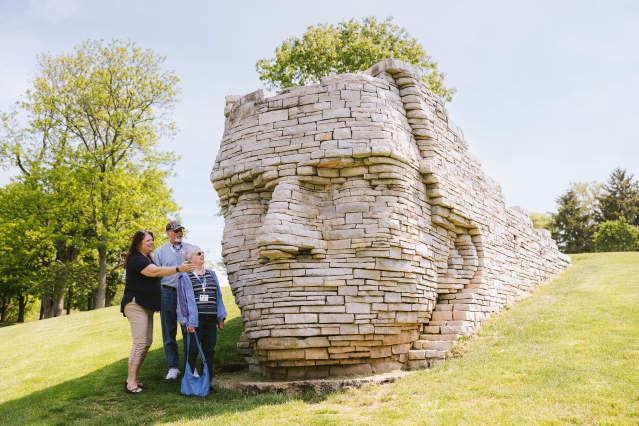 Leatherlips, located in Scioto Park along the Scioto River, is a striking public art installation that celebrates local history and creativity. This 12-foot-tall limestone sculpture, crafted by artist Ralph Helmick, honors Leatherlips, a Wyandot leader known for his wisdom and peacekeeping efforts. Visitors can admire the intricate design, enjoy the scenic river views, and relax in the surrounding park, which features picnic areas and walking trails.